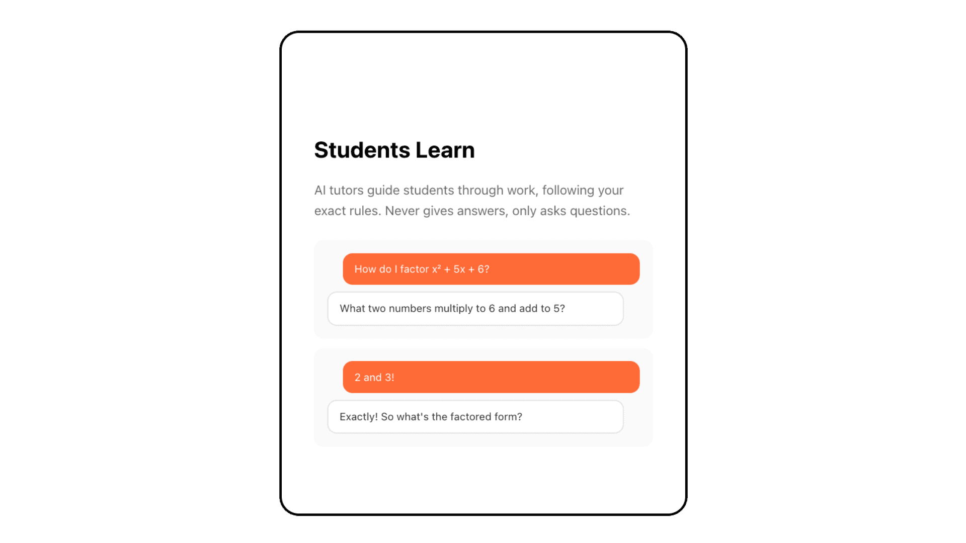 No. Tutors never give direct answers - they use the Socratic method to guide thinking. Plus, you can review every conversation students have with tutors to ensure academic integrity.